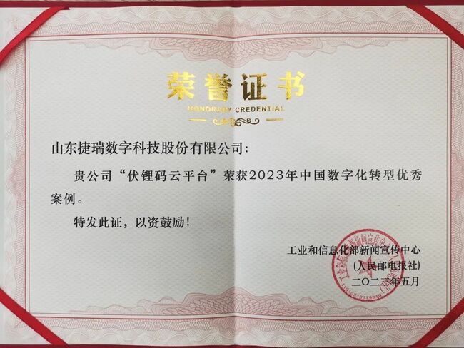 同時論壇還評選出2023年中國數字化轉型優秀案例,由捷瑞數字自主研發的伏鋰碼云平臺榮獲該項榮譽,以其精準數字化轉型解決方案推動數字經濟與實體經濟深度融合。