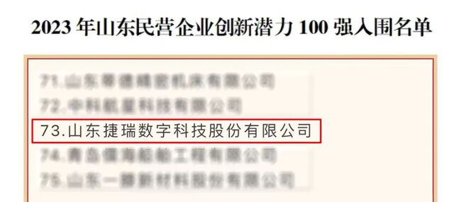 近日,山東省工商聯(lián)公布了2023年山東民營企業(yè)100強系列榜單,捷瑞數(shù)字憑借在數(shù)字孿生、工業(yè)互聯(lián)網(wǎng)領(lǐng)域的創(chuàng)新實踐,成功入圍“2023年山東民營企業(yè)創(chuàng)新潛力100強”榜單。